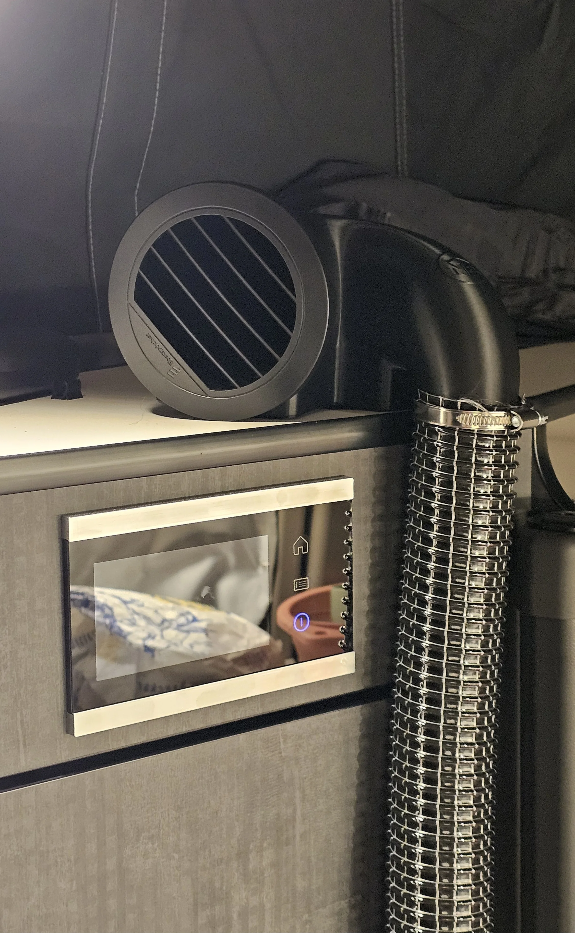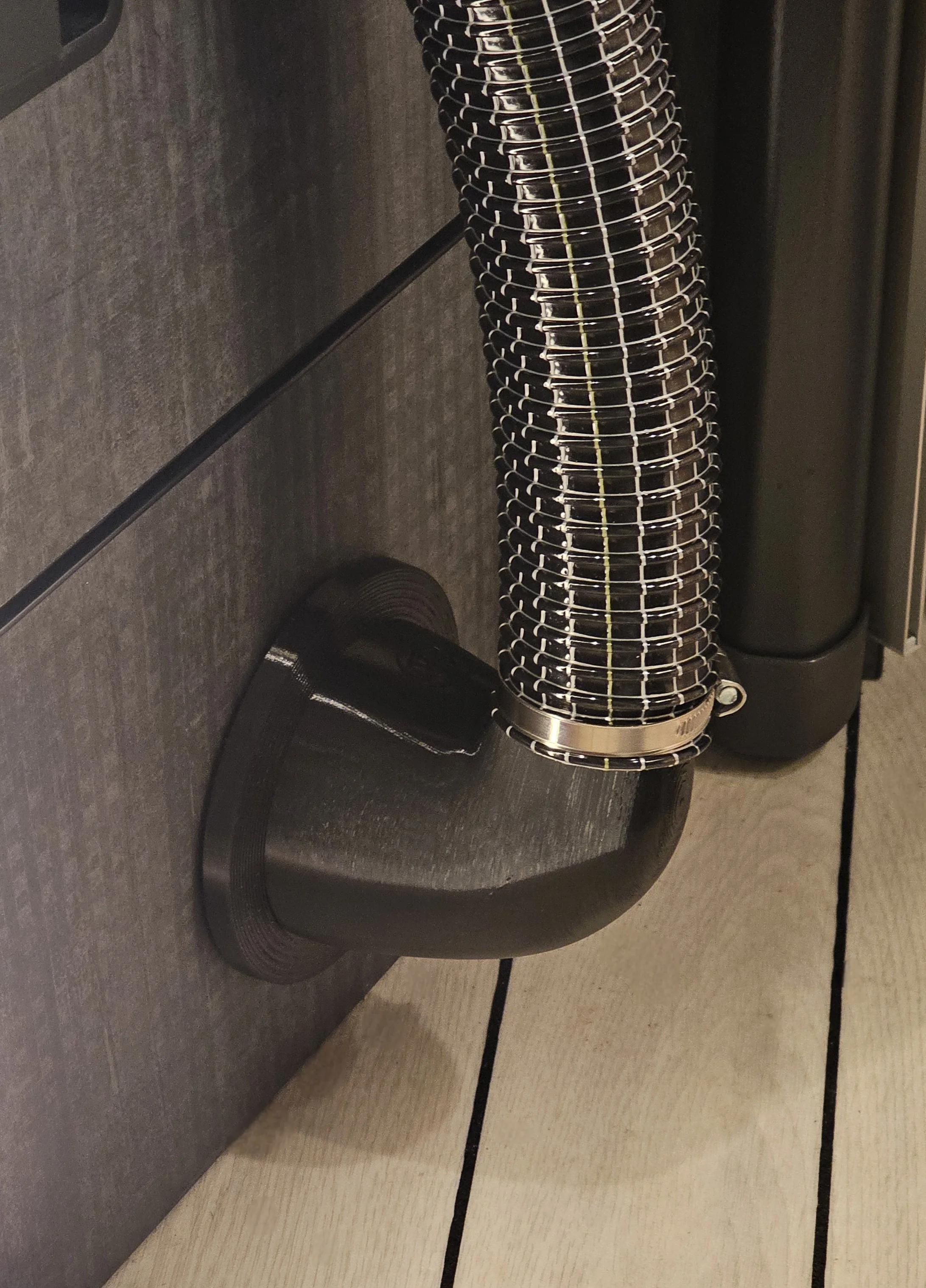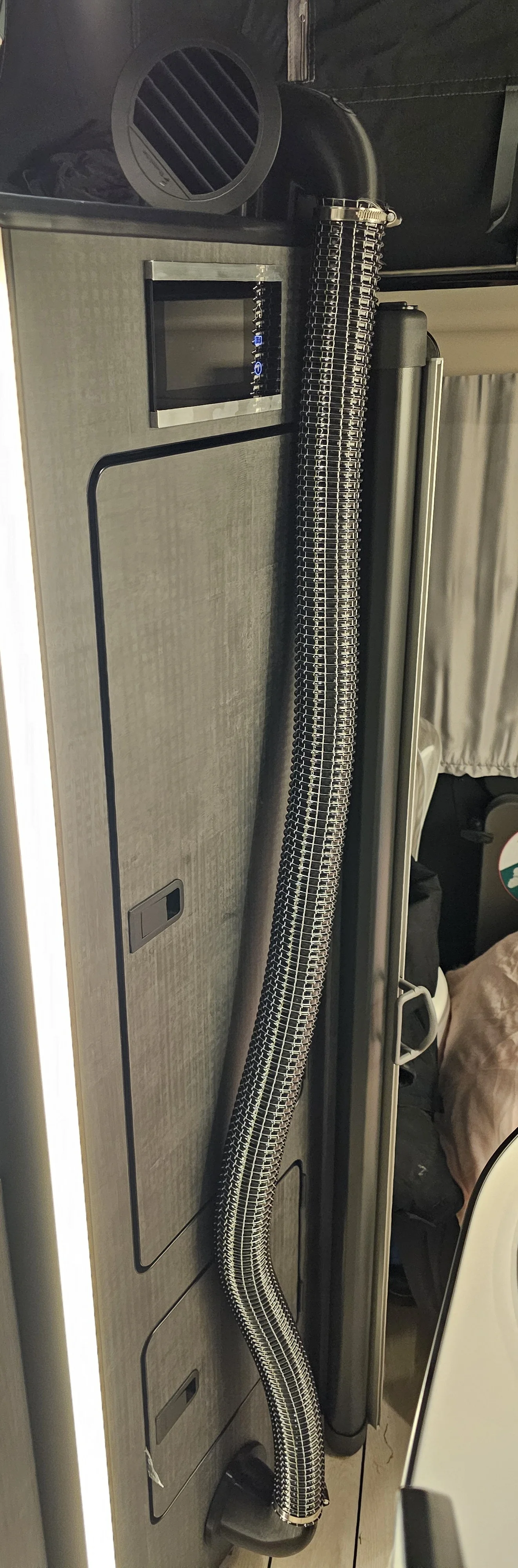Mit diesem Adapter wird der Austritt der warmen Luft im Winter bzw. der Umluft im Sommer dort hingeleitet wo sie tatsächlich benötigt wird. Unserer Erfahrung nach ist hiermit auch das Campen bei -6° in oberen Bett absolut angenehm. Ein deutlich unterschied gegenüber der originalen Lösung.