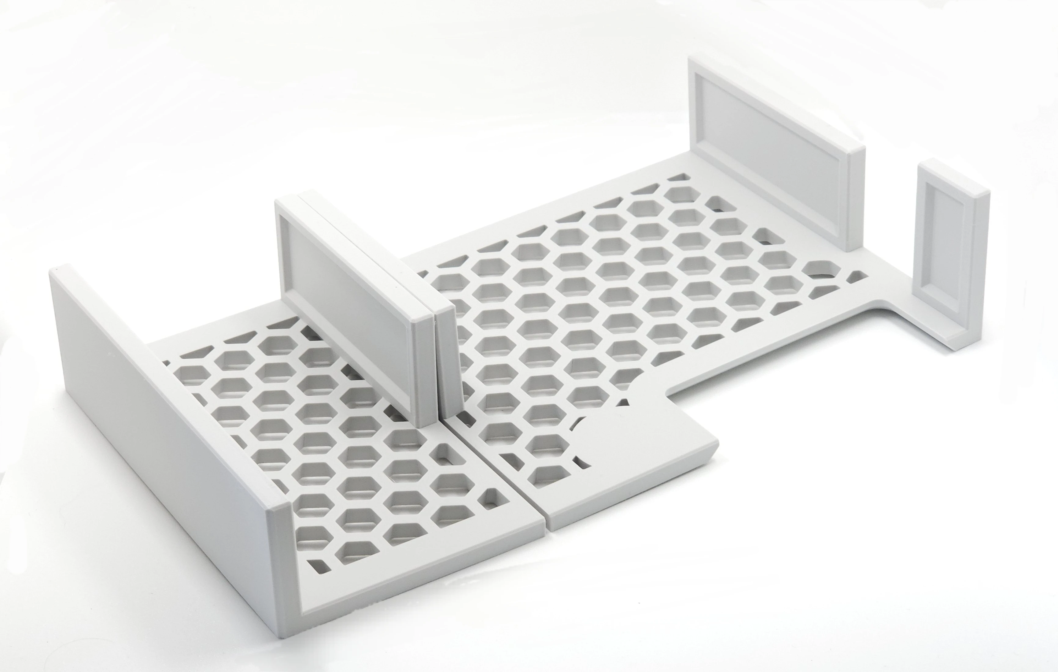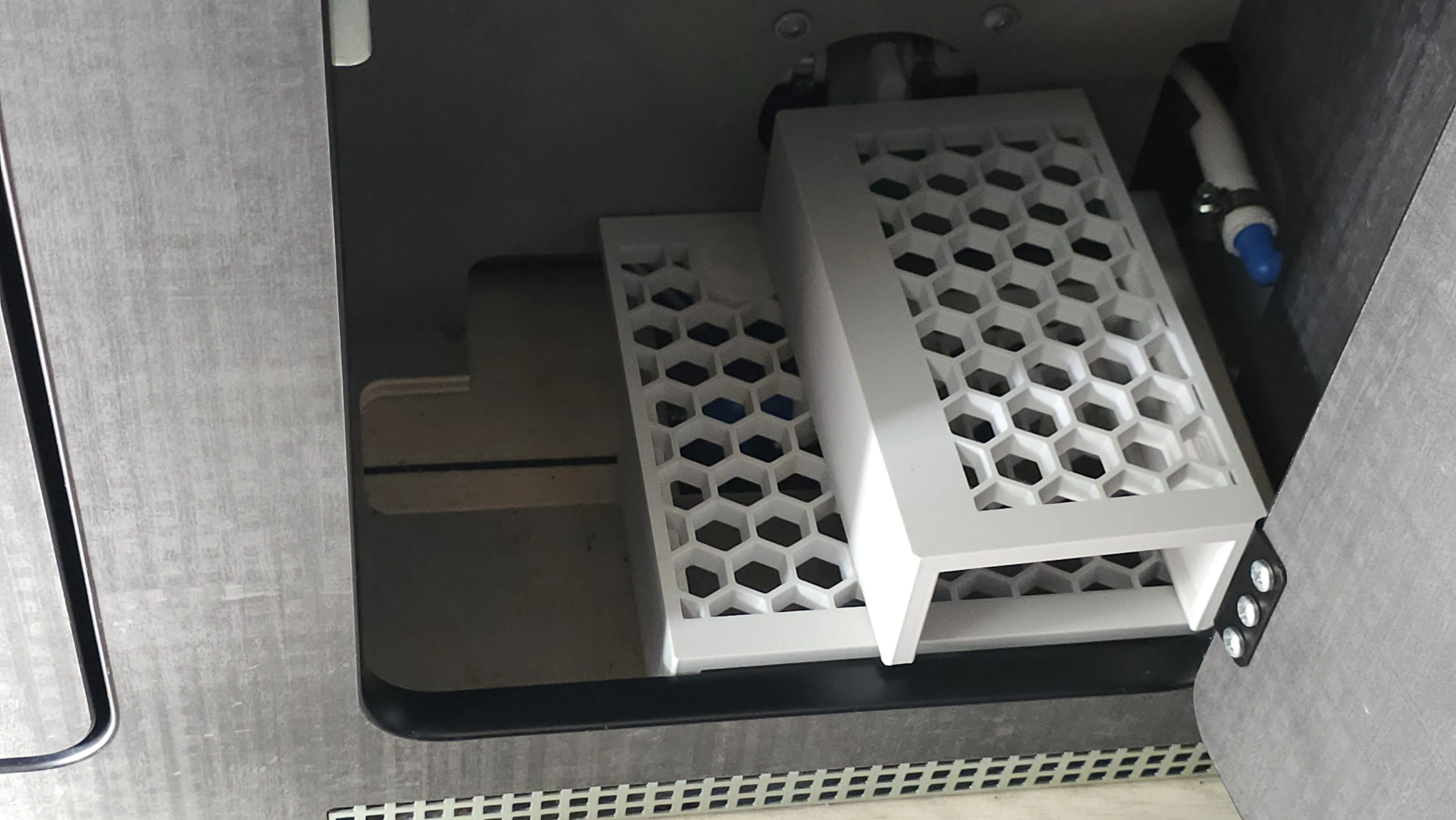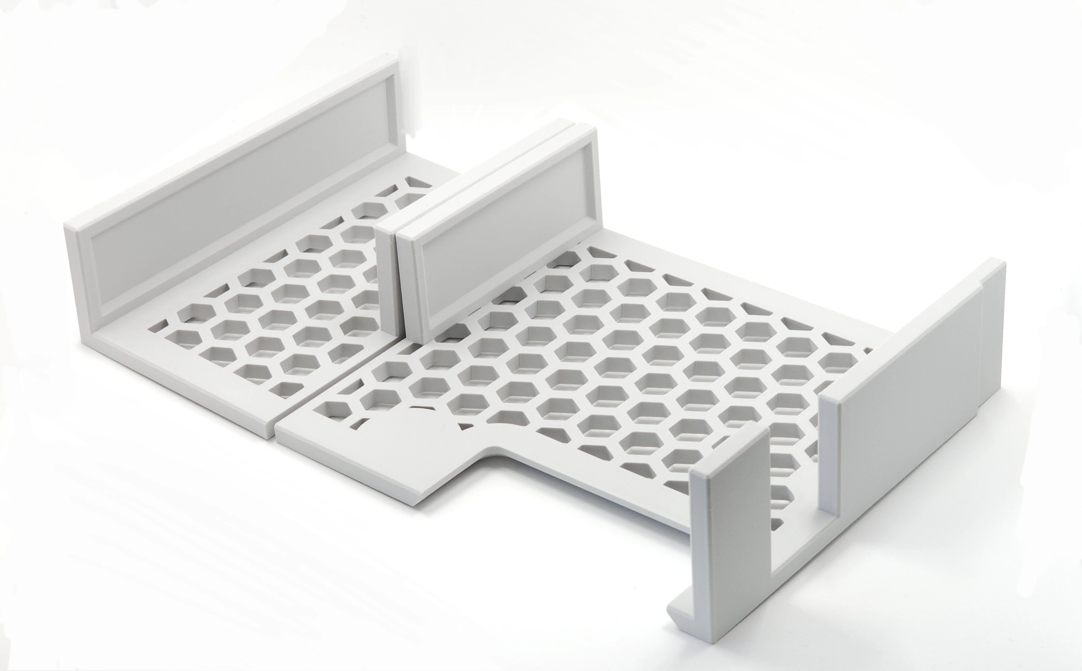 Mit dem Einsatz wird eine zweite flache Ebene geschaffen. Der zweiteilige Einsatz ist leicht zu entnehmen und somit kann der Raum darunter gut genutzt werden. Die Wasserhähne sind trotzdem gut zu erreichen.